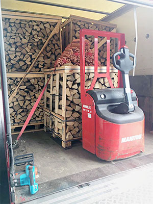 Sofern es der Untergrund (Asphalt; Pflaster; Fließen etc.) und das Gelände (nicht zu steil) zulassen stellen wir die Paletten gerne in die Garage, Scheune oder das Carport.